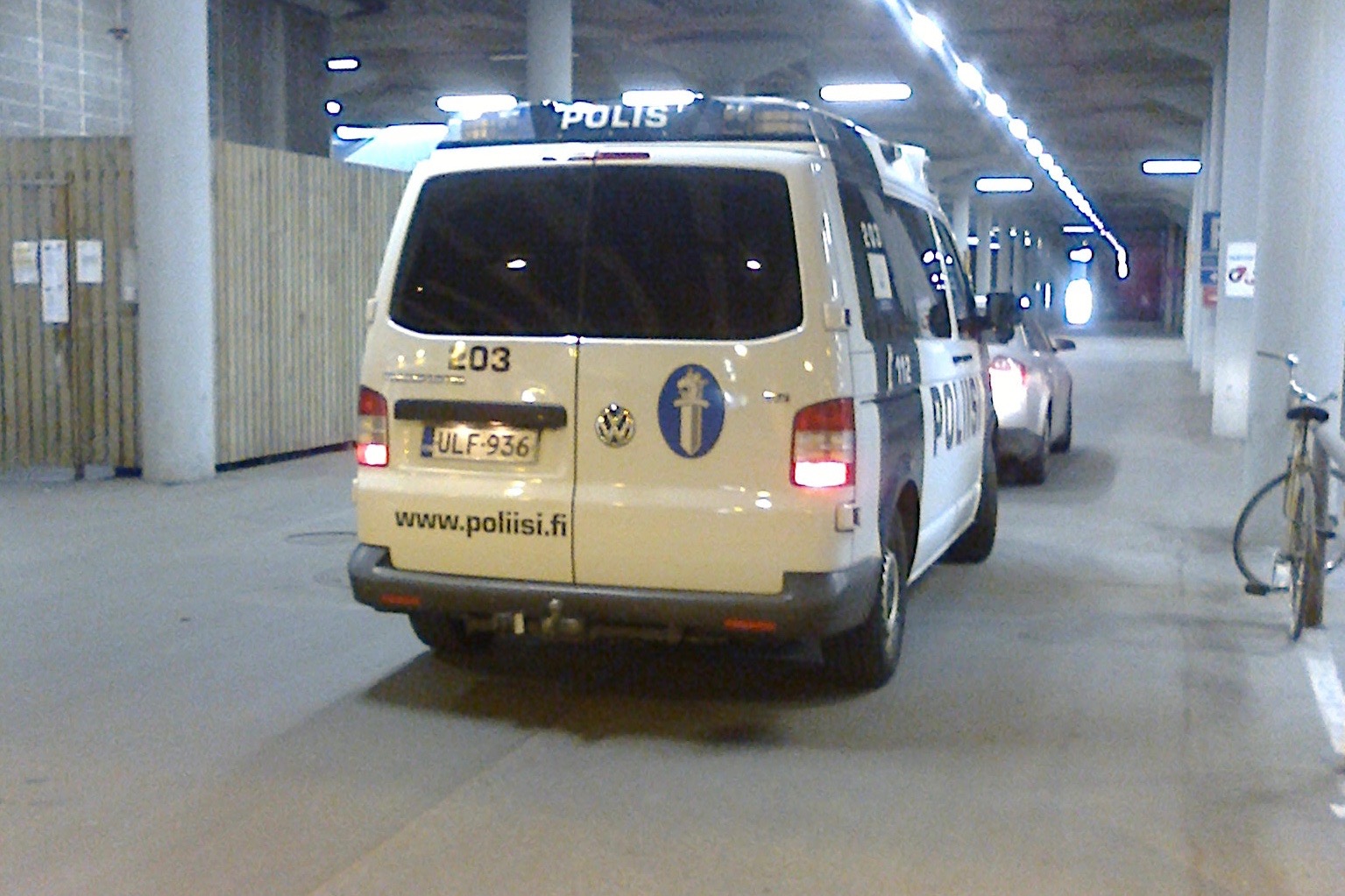 Kun olin tullut ulos Siltasaaren S-marketista, Hakaniemen suunnalta tullut poliisimaija (tunnus 203) kääntyi hetken kuluttua siitä klo 20:09 Hakaniemenrantaan, mutta en ehtinyt napsaista siitä kuvaa. Sain siitä kuitenkin kuvan Merihaan tunnelissa hetkeä myöhemmin pyöräillessäni kotiinpäin, kun se oli pysäköity parkkihallin suulle henkilöauton perään. Kun olin polkenut eteenpäin, sama maija ajoi ohi Sörnäisten rantatien ja Lintulahdenkujan risteyksessä. Kuvat otettu klo 20:17 ja 20:21.